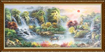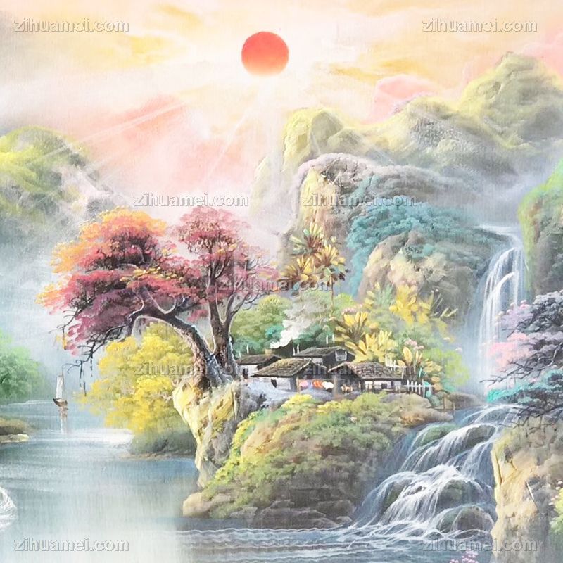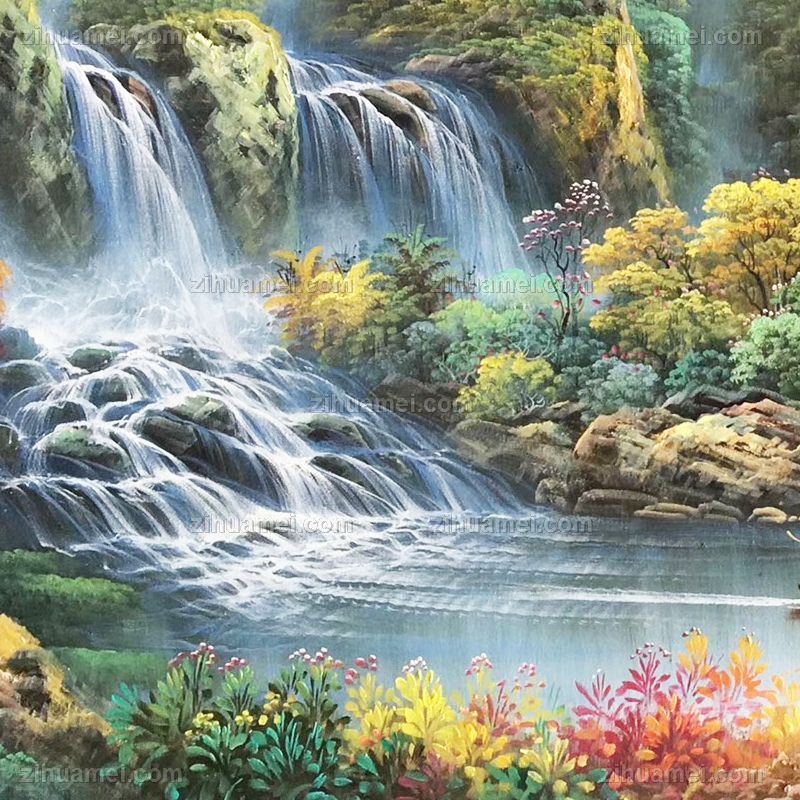 纯手绘风景油画山水画聚宝盆风景油画实木画框 手绘