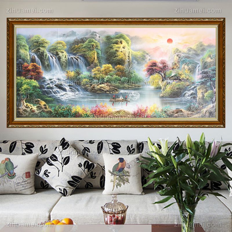 • 手绘油画 风景画 山水画 适合客厅的油画 装饰画选油画 高档奢华实木框