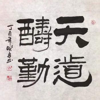 • 天道酬勤 胡贤勇 手绘 中国书画家协会会员 四尺斗方 手工 国画水墨画 书法作品