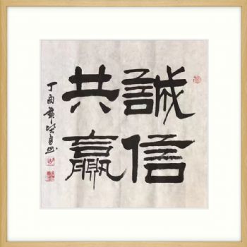 • 书法作品 诚信共赢 中国书画家协会会员 胡贤勇 手绘作品 原木色实木框