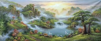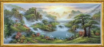 金山聚宝盆山水风景油画纯手绘大厅山水风景油画 手绘
