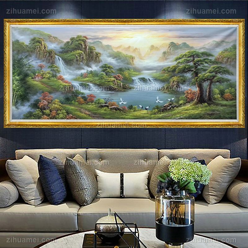 • 纯手绘中式油画 山水画 油画风景画 风水油画 实木框 客厅挂画 酒店大堂挂画