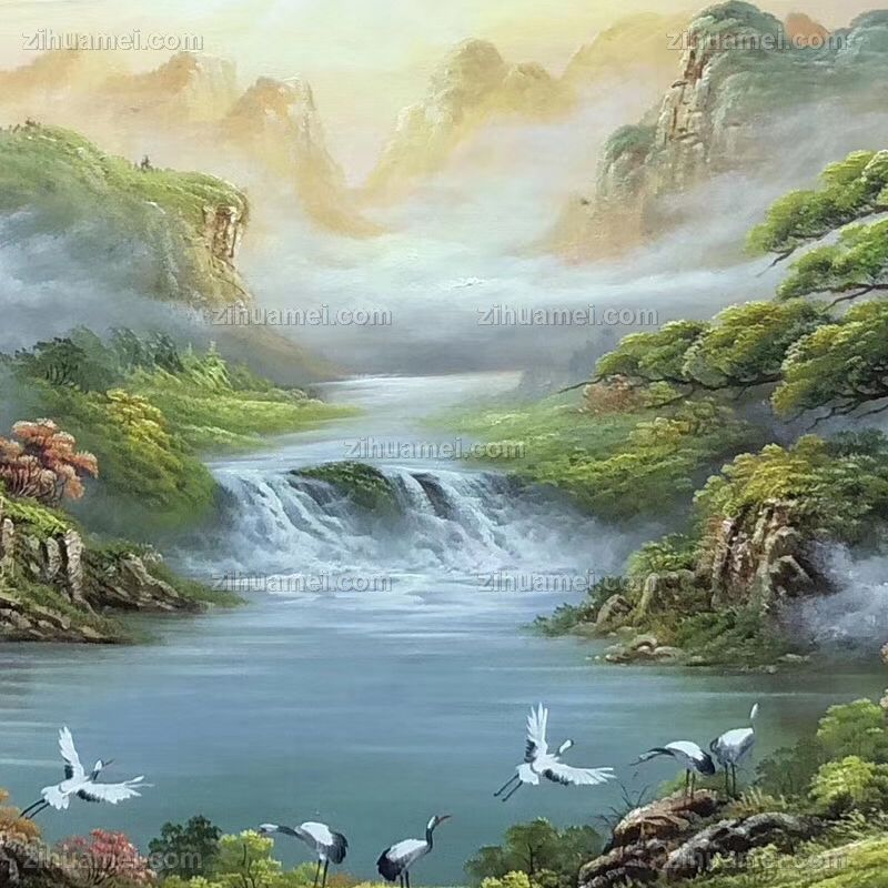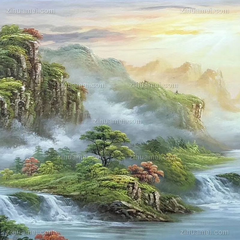 纯手绘风景油画山水画聚宝盆风景油画实木画框 手绘