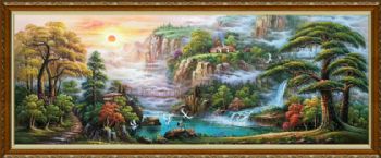 安居乐业山川风景油画纯手绘风景聚宝盆油画 手绘