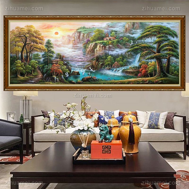 纯手绘风景油画山水画聚宝盆风景油画实木画框 手绘