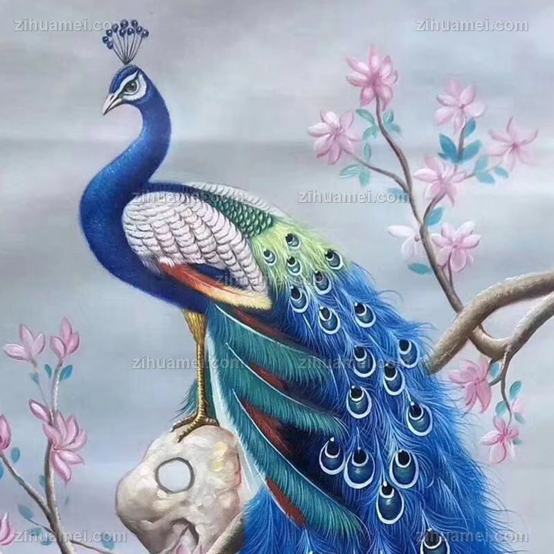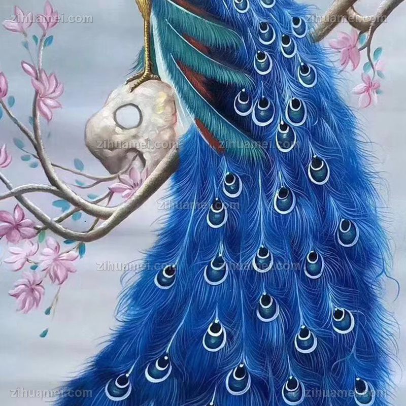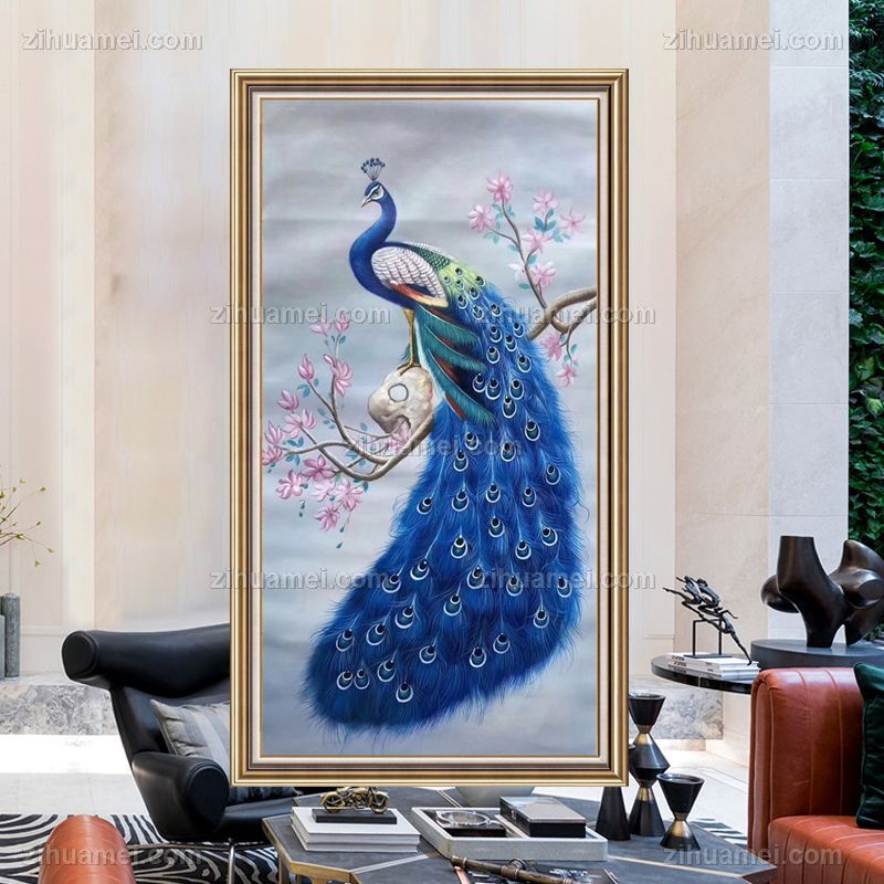 • 立在枝头上的孔雀中式油画寓意为出人头地玄关竖版油画客厅装饰画手绘油画孔雀挂画