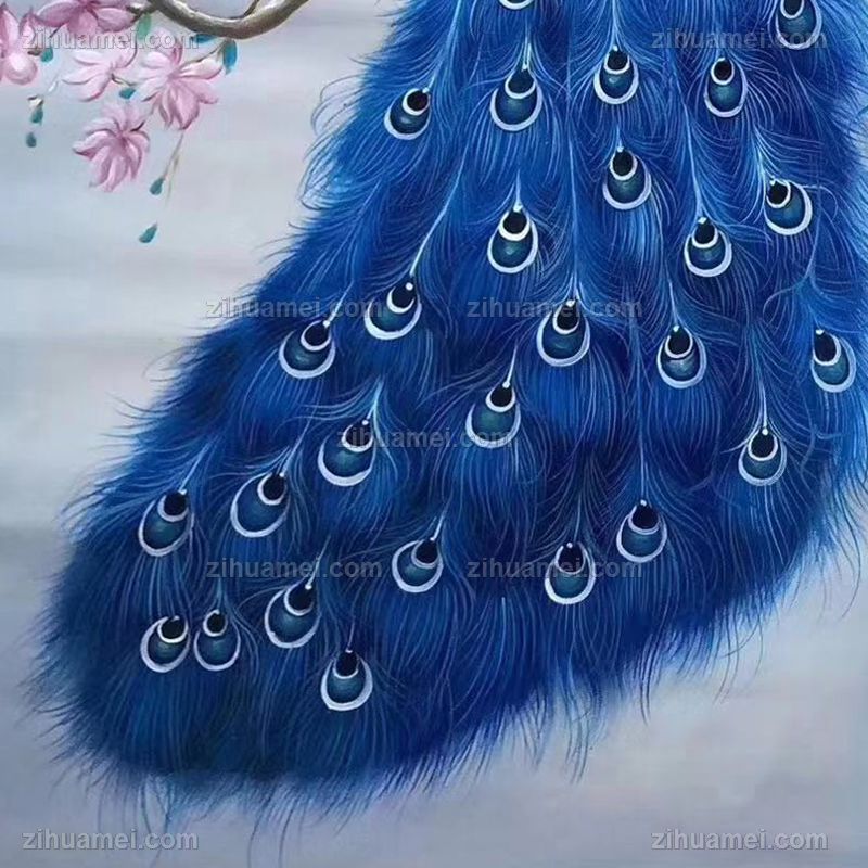 孔雀玉兰花纯手绘新中式客厅油画实木外框 手绘