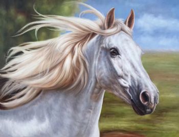 当代艺术大写意白马系列纯手绘马头油画作品 手绘