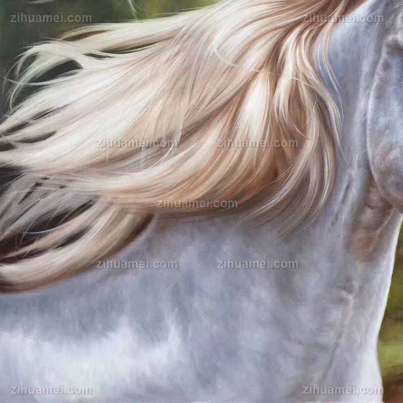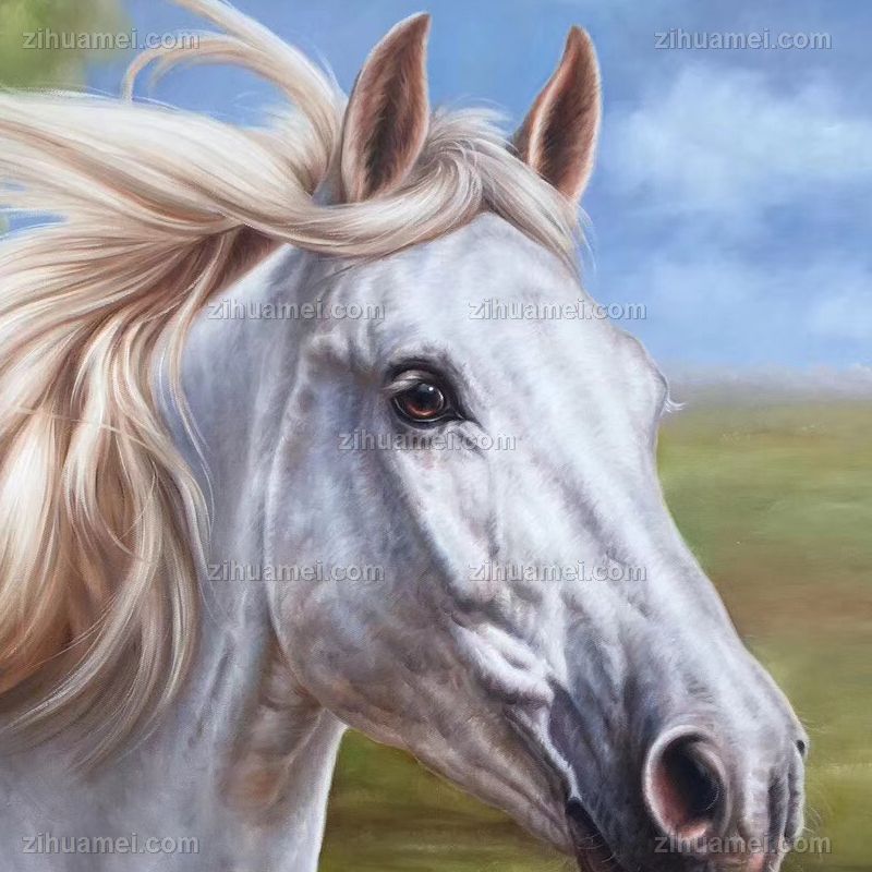 精品花卉白马图纯手绘写实动物油画实木画框 手绘