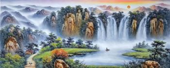 金山聚宝盆山水风景油画纯手绘大厅山水风景油画 手绘