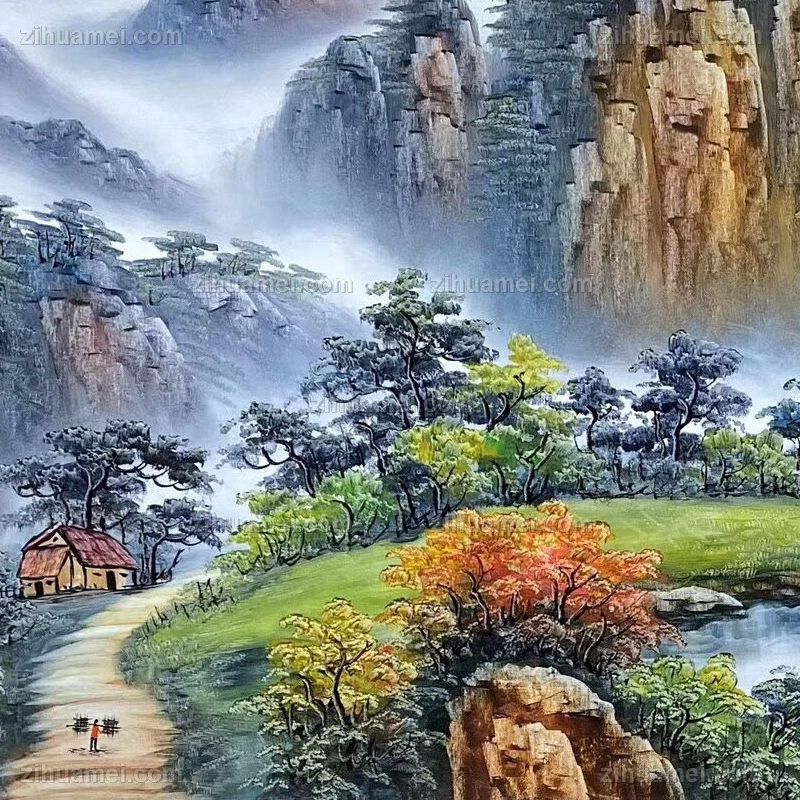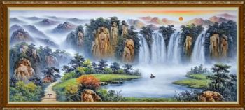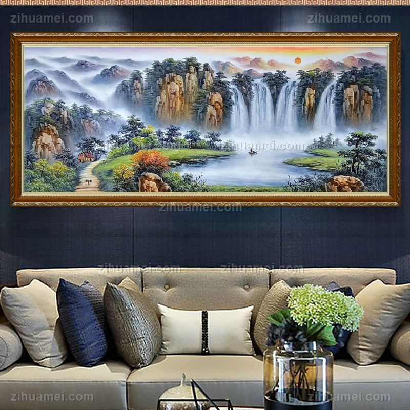 纯手绘风景油画山水画聚宝盆风景油画实木画框 手绘