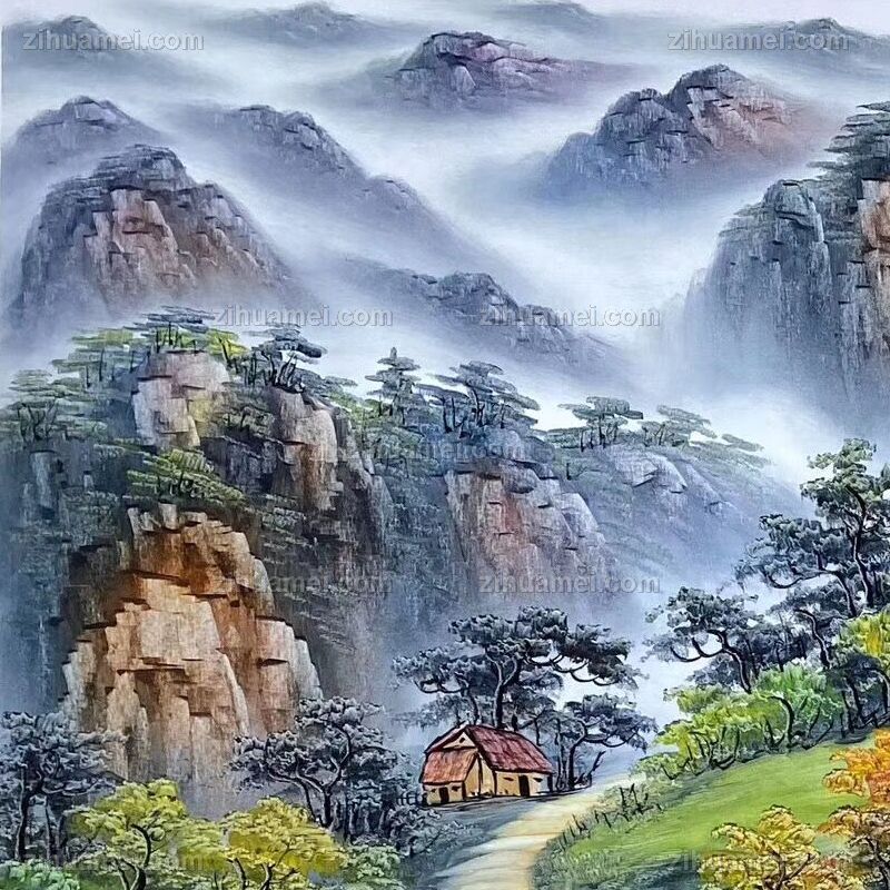 金山系列风景油画纯手绘油画装饰画实木外框 手绘