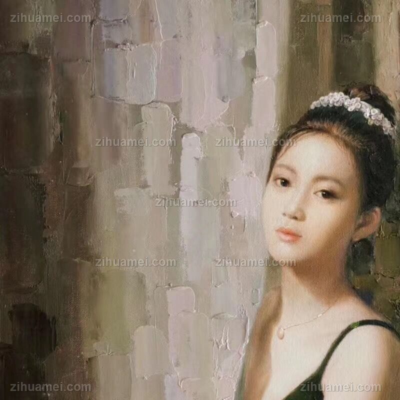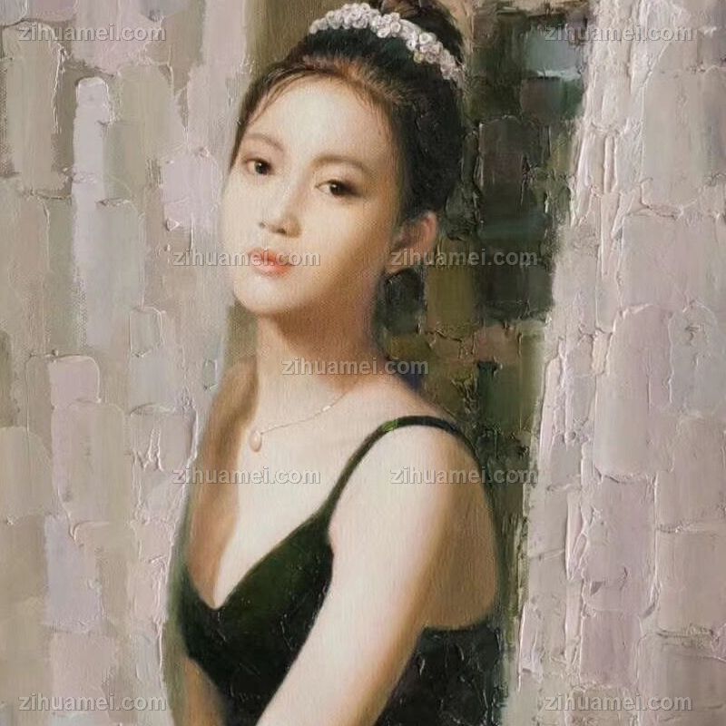 中式美女人物肖像图纯手绘人物油画写实美女图 手绘