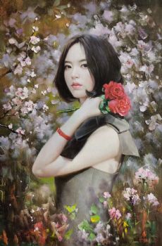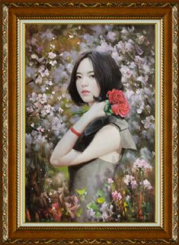纯手绘朝鲜人物油画精品收藏油画美女图 手绘
