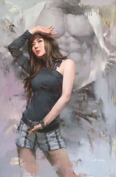 纯手绘朝鲜人物油画精品收藏油画美女图 手绘