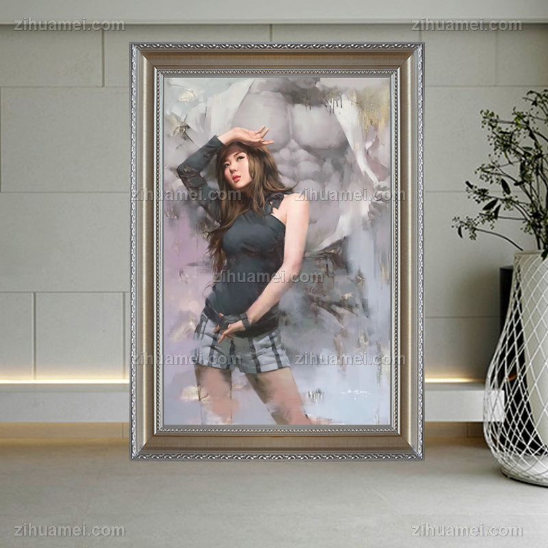 • 适合酒店卧室挂画纯手绘油画美女油画抽象艺术手法人体中式油画实木外框精品艺术