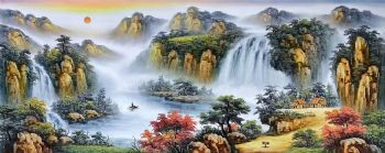 金山聚宝盆山水风景油画纯手绘大厅山水风景油画 手绘
