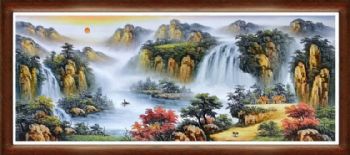 纯手绘风景油画山水画聚宝盆风景油画实木画框 手绘