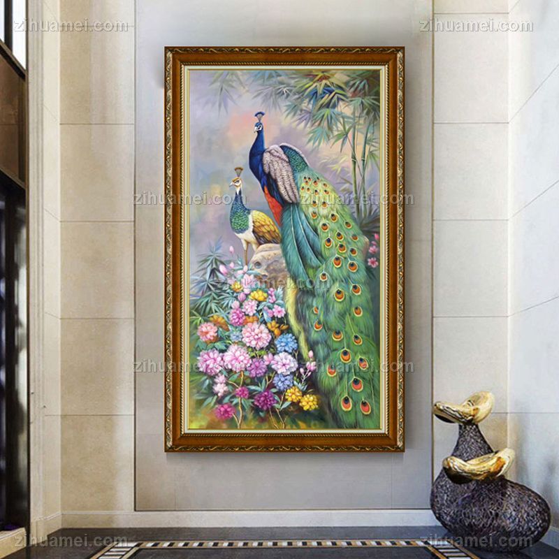 玄关孔雀油画装饰画