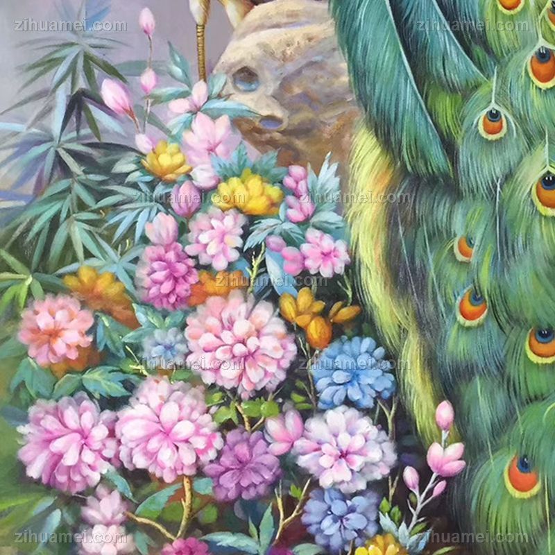 • 实力画家精品作品适合酒店别墅玄关奢华孔雀手绘油画实木画框