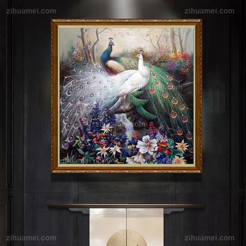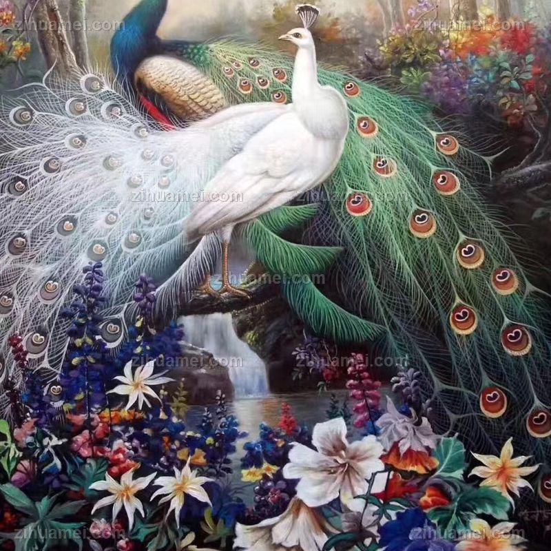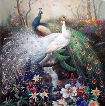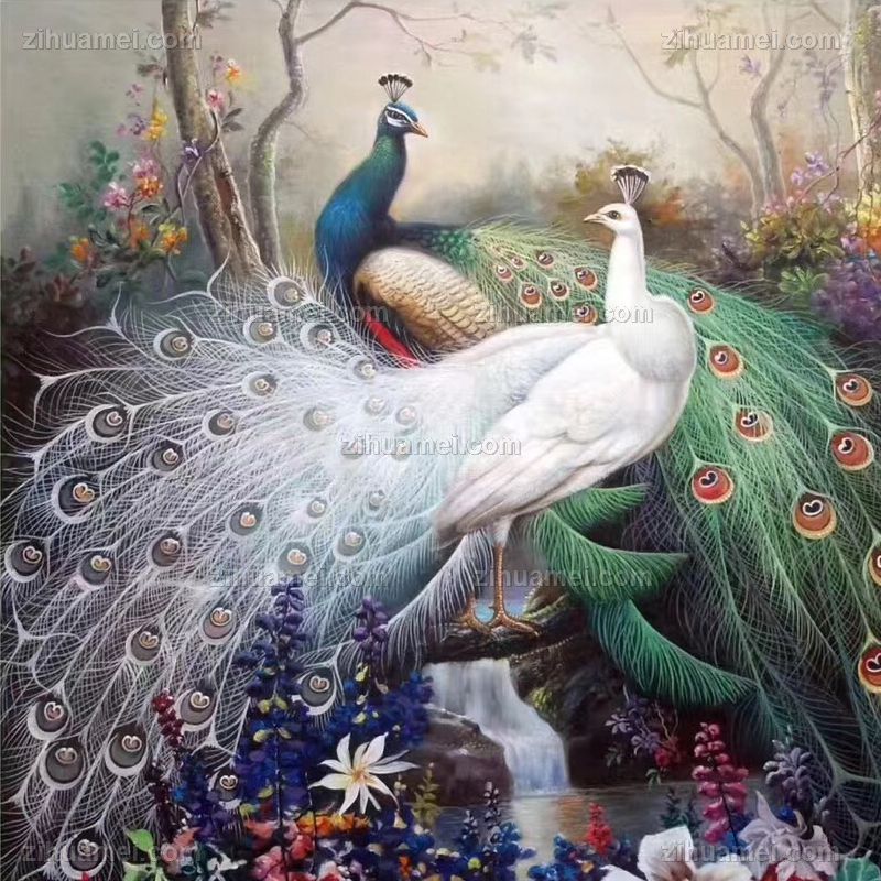 • 聪明善良自由和平孔雀是吉祥鸟的象征实力画家手绘油画适合客厅挂画