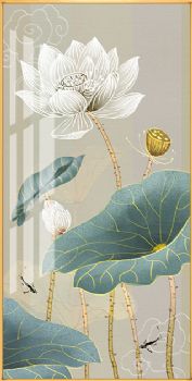 • 荷花新中式玄关装饰画竖版过道走廊客厅挂画