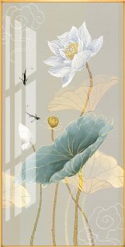 晶瓷画新中式荷花装饰画晶瓷画晶瓷画铝合金外框画框装饰画画框