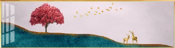 现代高清大型晶瓷画黄金树风水画新中式装饰样板房客厅装饰画 高清微喷