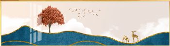 现代高清大型晶瓷画黄金树风水画新中式装饰样板房客厅装饰画 高清微喷