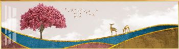 现代高清大型晶瓷画黄金树风水画新中式装饰样板房客厅装饰画 高清微喷