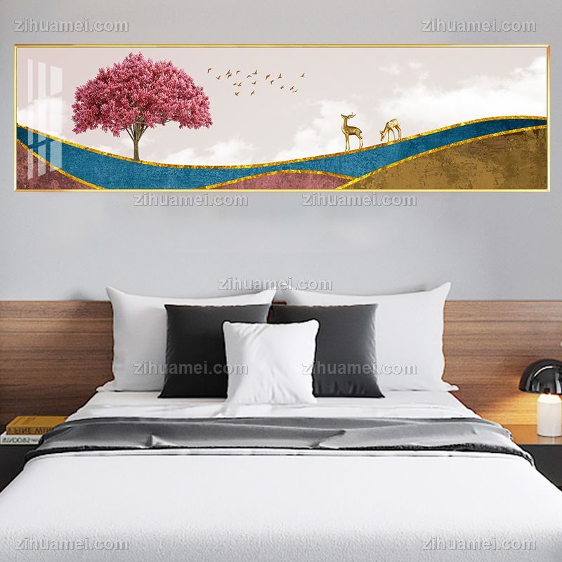 • 现代简约卧室装饰画房间横长款床头画抽象风景软装壁画