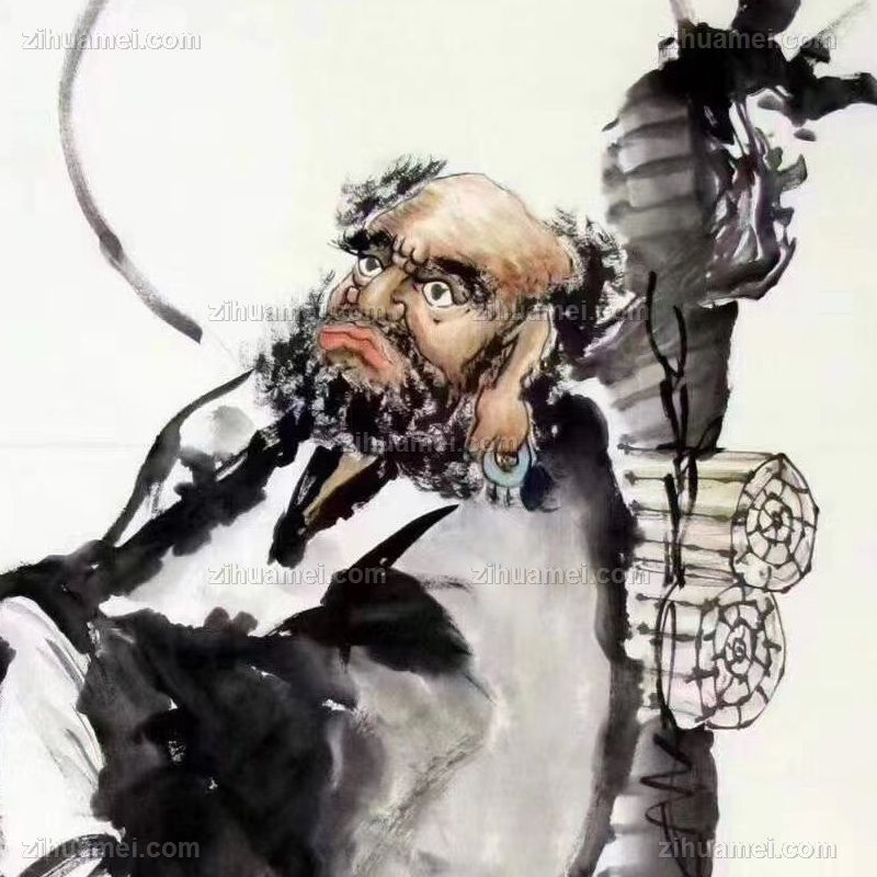 • 手绘写意达摩祖师一苇渡江人物国画寓意一个人的修为或境界高励志国画