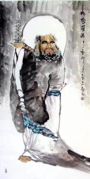 • 手绘国画人物画十八罗汉之托塔罗汉驱邪避灾中式画实木框