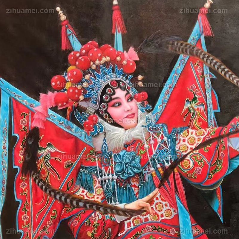 • 新中式中华传统京剧造型北京特色京剧人物精品手绘油画实木外框