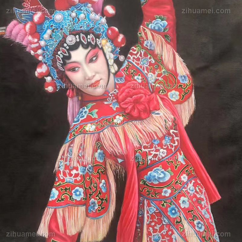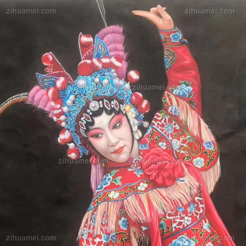 • 京剧人物造型新中式中华传统北京特色京剧人物精品手绘油画实木外框