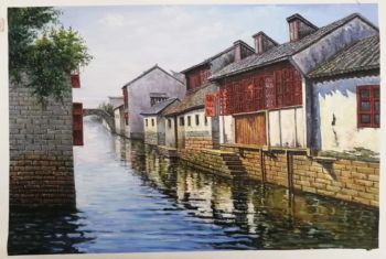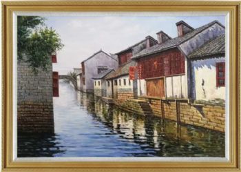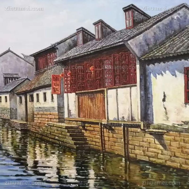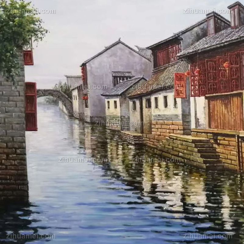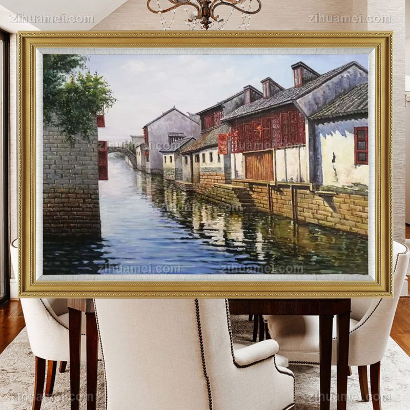 • 高品质江南小桥流水人家客厅走廊挂画水乡写意风景油画