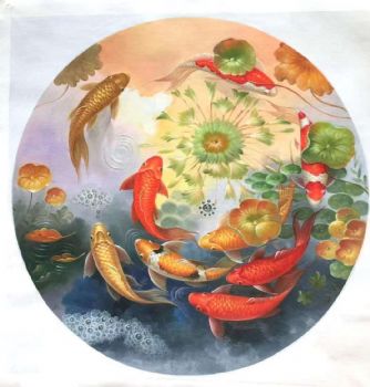 手绘九鱼图油画