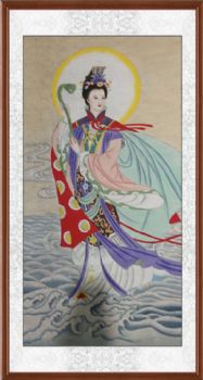 纯手绘工笔人物国画中堂挂画观世音菩萨像 手绘