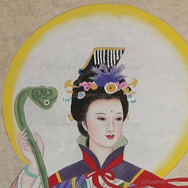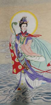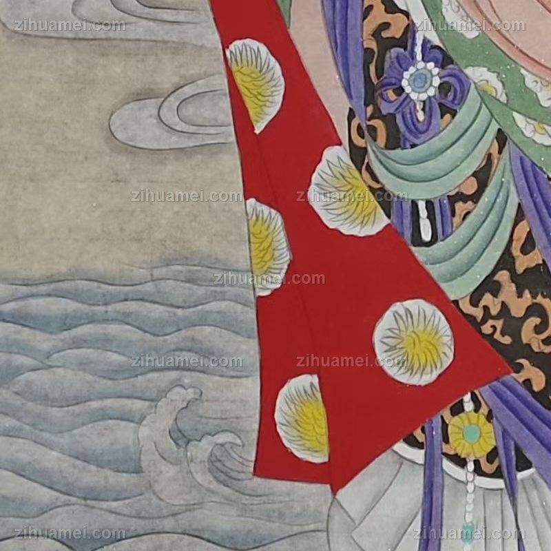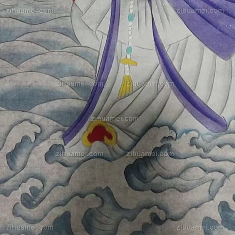• 脚踏祥云手持如意观世音菩萨画像工笔画万事如意纯手绘佛像
