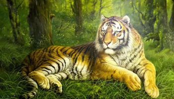 • 朝鲜油画卧着的猛虎纯手绘油画实力油画艺术家原创作品