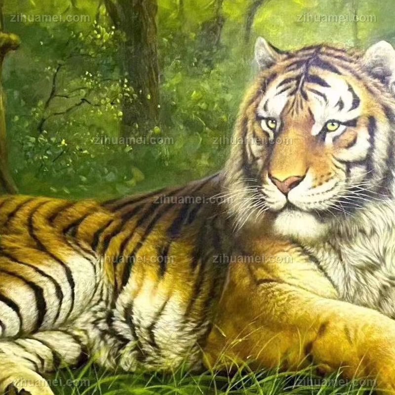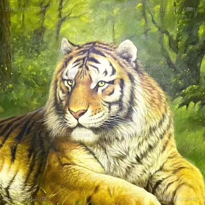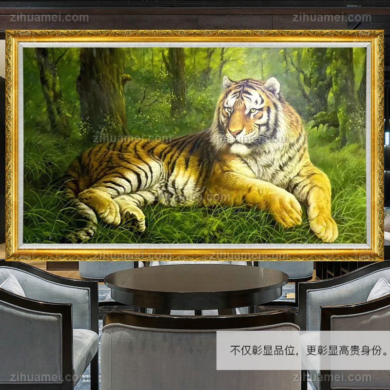 动物写实油画老虎图纯手绘动物油画办公室挂画 手绘