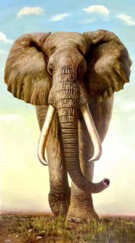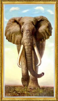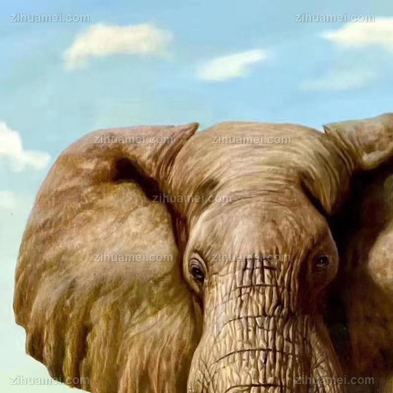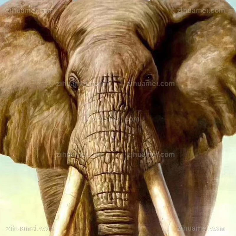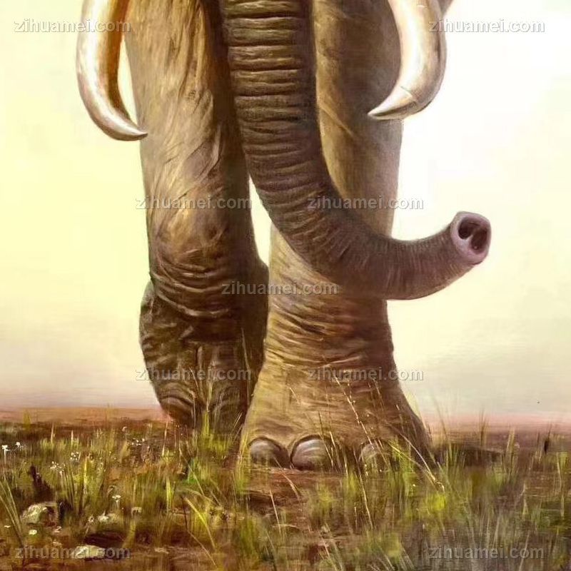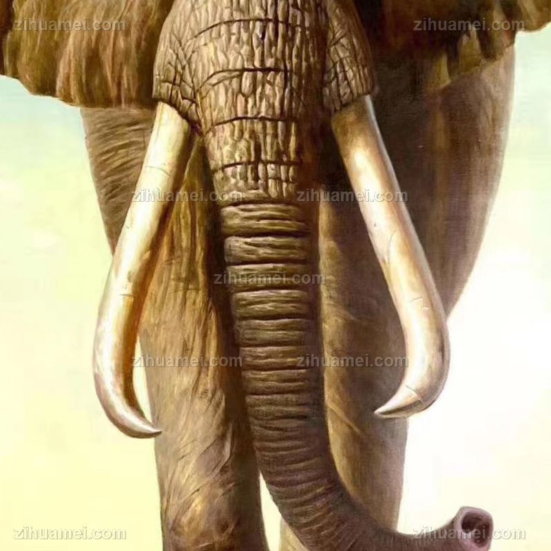 • 朝鲜油画雄壮的大象长鼻子吸收财气风水油画纯手绘实力画家原创