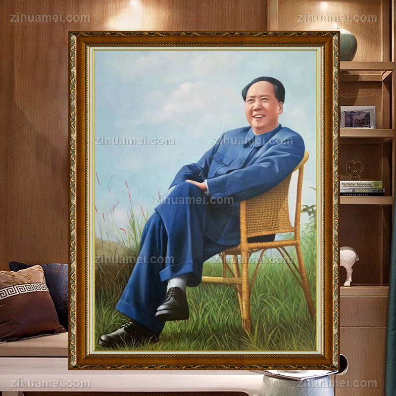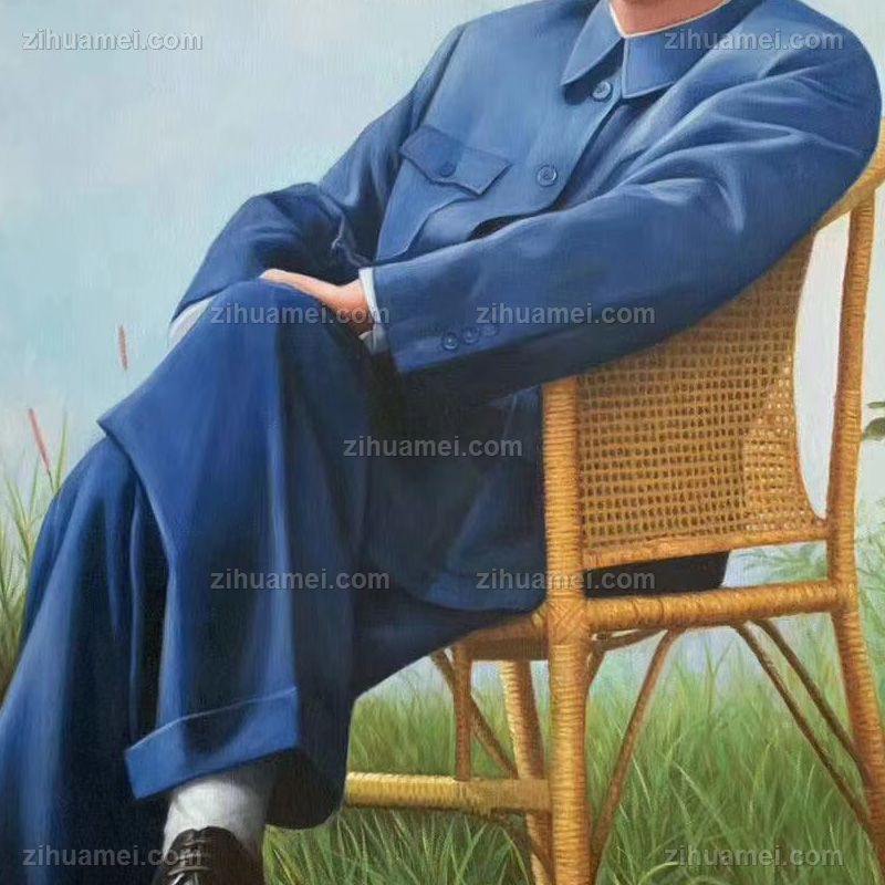 • 一代伟人人物肖像油画毛泽东同志休闲中式写实油画油画人物画