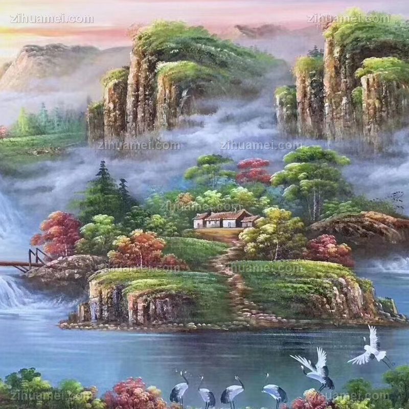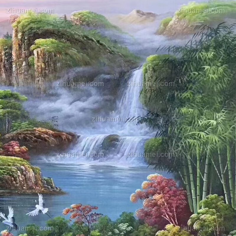 纯手绘中式风水油画