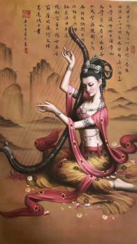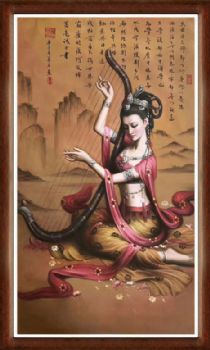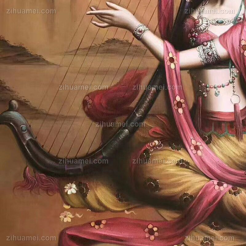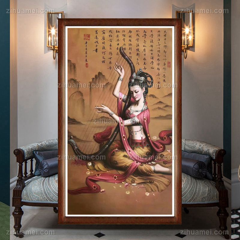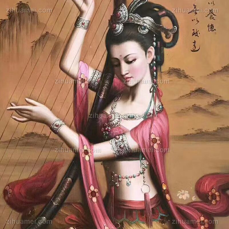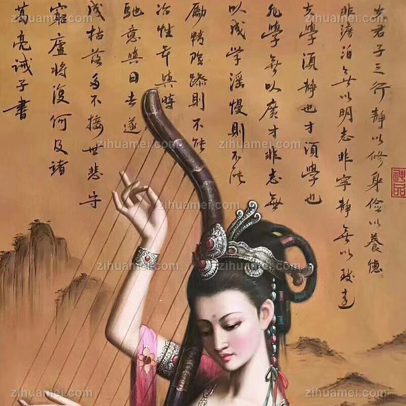 • 诸葛亮戒子书诗词与美女人物手绘油画新中式油画古装美女与竖琴