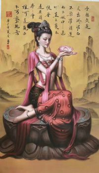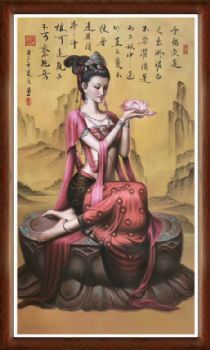 • 作者周敦颐爱莲说诗词与美女人物手绘油画新中式油画美女手捧莲花