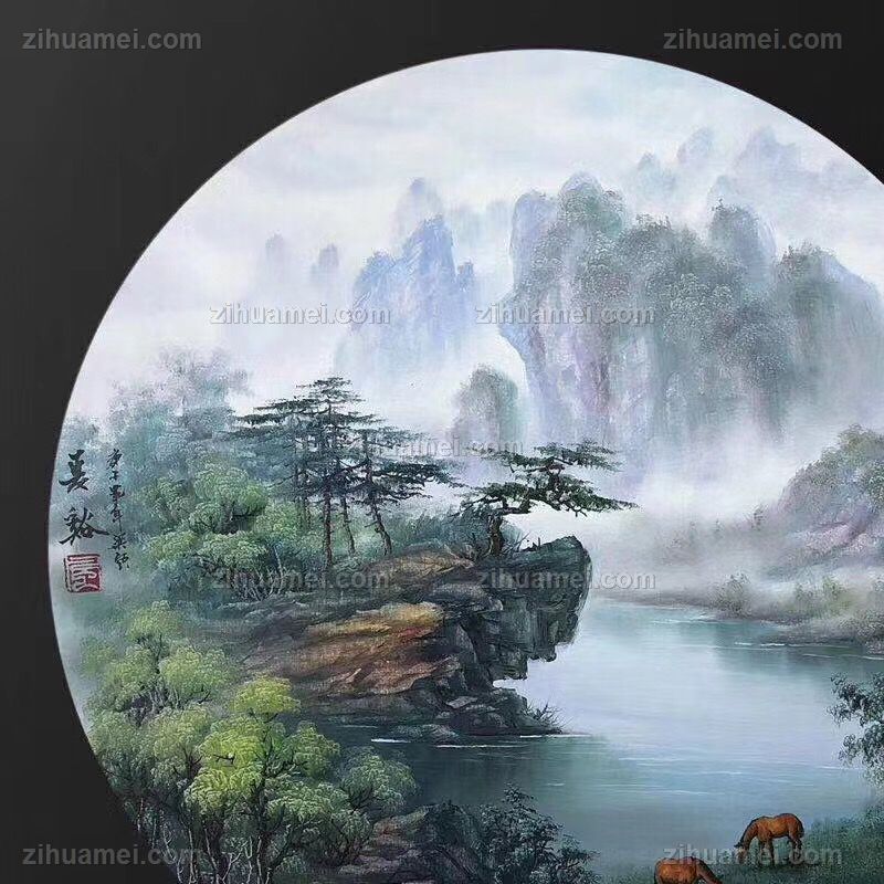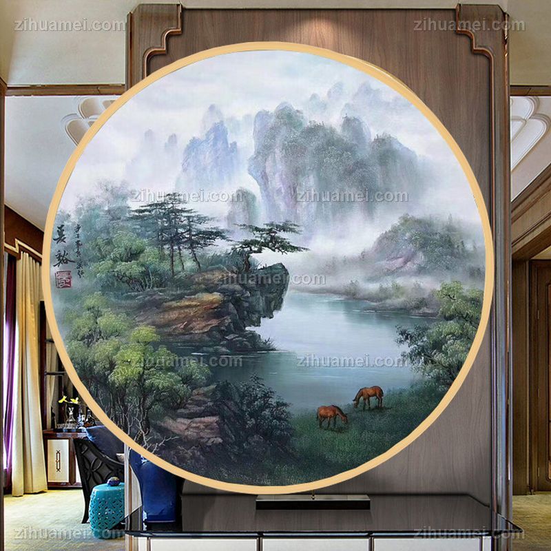 圆形山水油画风景画