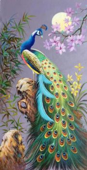 月光下的孔雀纯手绘油画