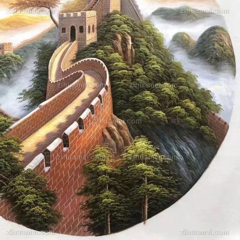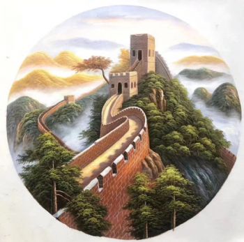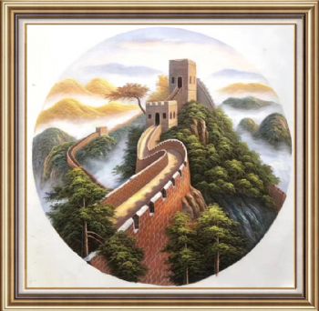 • 现代新中式油画长城油画风景写实油画圆形风格实木画框适合客厅挂画