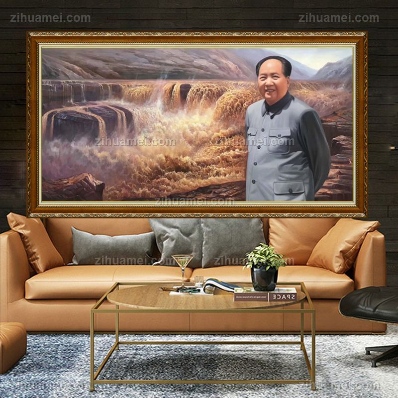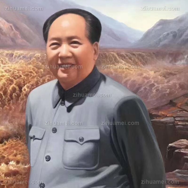 • 江山如画手绘伟人油画中华母亲河黄河油画肖像画毛泽东油画写实油画
